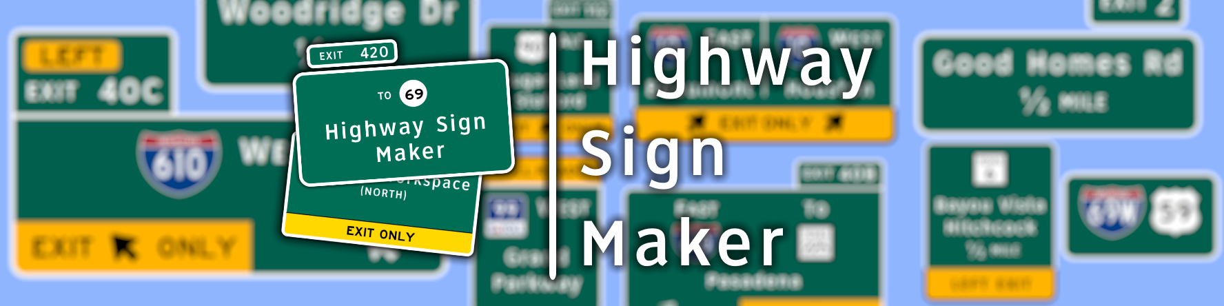 SignMaker is a web-based program that allows you to make realistic highway signs that exist in the United States and Canada! We are based off the roots of Kurumi's Sign Maker, designed to be easy and efficient; only this time, with a whole lot more features. I hope you enjoy my little creation!
